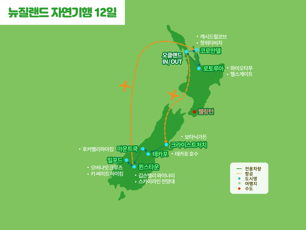 ■ 전 일정 기사/가이드 경비 NZD 100달러/1인 현지에서 지불하셔야 합니다.
