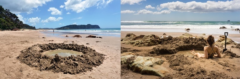 썰물 후 두 시간씩 핫 워터비치에서 모래를 작은 웅덩이를 만들어 그 안에 앉아 천연 해수 온천을 하는 이색적인 경험을 할 수 있습니다. 그냥 물에 들어가면 차갑지만 모래를 파서 차오른 물은 뜨거워서 천연 바다 온천을 즐길 수 있어 ‘죽기 전에 꼭 가야 할 세계휴양지 100 ’에 꼽힌 곳이기도 합니다.