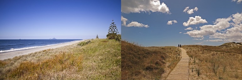 뉴질랜드 현지인에게 사랑받는 휴양지로 유명한 파파모아 비치는, 마운트 망가누이의 해안선을 따라 16km가량 뻗어 있는 백사장 해변입니다. 넓고 평평한 모래, 광대한 사구로 수영, 서핑, 낚시, 비치 크리켓, 비치 폴로 등 다양한 해변 스포츠를 즐기기에 이상적인 곳입니다. 또한, 초기 마오리 이주민들이 요새로 이용했던 파파모아 힐스 공원이 인접해 있어, 공원의 정상에 올라 파파모아 비치의 아름다운 절경을 감상할 수 있습니다.