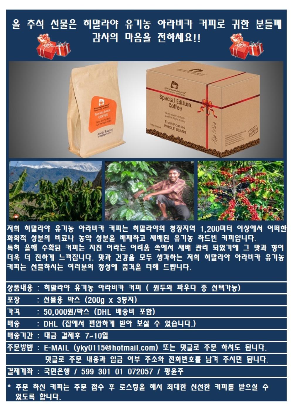 올 추석 선물은 히말라야 유기농 아라비카 커피로 감사의 마음을 전하세요!!!