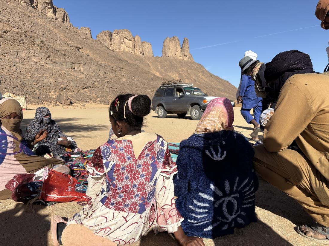 사하라 사막에서의 사진입니다. 사막 트래킹시 우물이 있는 곳에서 한장, 짚차로 달리는 사막장면과 여인들이 가지고 나온 조그만 장터 모습입니다.