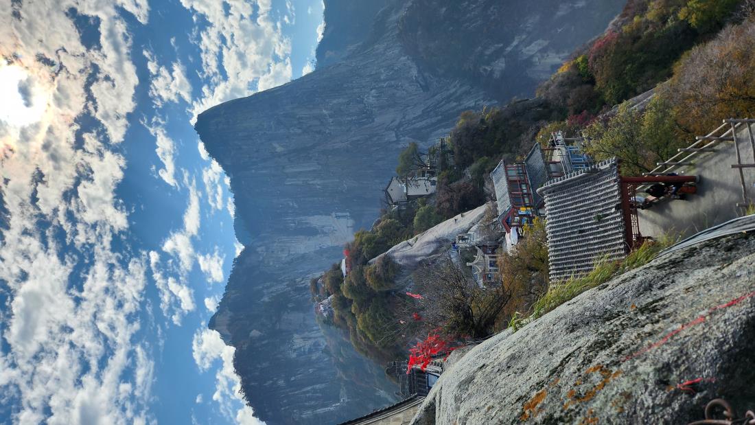 숭산 그 계단을 오를땐 숨이 턱까지 차오르고 내 다리가 아닌 듯 했지만,보는 것만으로도 그 모든 힘듦을 순식간에 사라지게 만드는 까마득히 높은 돌산 벼랑길 잔도ㆍ화산은 또 어떤가 구비구비 굴러떨어질듯 아스라한 낭떠러지 길ㆍ산꼭대기 절벽에 붙여 지어진 도교사원들과 팔각정? ㅎㅎ ㆍ카메라로 절대 담을수없던 웅대함에 매료되어 힘든 줄 몰랐던 그 장면들이