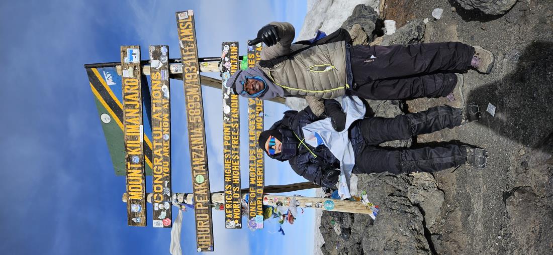 눈 덮힌 킬리만자로산에서 눈을 밟고 걸으시는 사진이 아주 장관입니다.