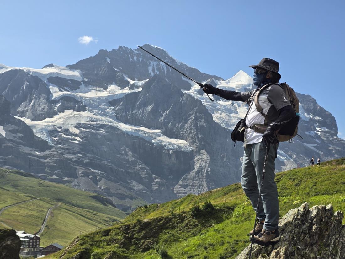 한국엔 찜통더윈데 스위스 하이킹 코스는 평균 해발 1600m~2000m 사이로 날씨가 서늘해서 경량패딩에 머플러, 장갑까지 착용해야 했으며, 한국의 무더위를 피해 휴가 온 느낌이었다. 새하얀 설산 아래 푸른 초원이 펼쳐지고 야생화가 흐드러지게 피어 있어 마음이 정화되는 느낌이었다. 에메랄드빛 호숫가를 걸으며 시시각각 변하는 알프스의 풍광과 발길 닿는 곳마다 아름다운 전경의 신비로움에 정신이 팔려 셔터를 정신없이 눌렀다. 멘리헨에서 묀히(Monch), 아이거(Eiger) 북벽, 융프라우요흐의 명봉들을 바라보며 크라이네샤이덱역까지 2시간 정도 하이킹했다. 융프라우 행 빨간 열차를 타고 바위를 뚫은 터널을 통과하여 융프라우요흐역(3,454m)으로 올라가 알레취 빙하, 얼음 궁전의 온갖 얼음 조각들에 파란 불빛이 굴절되어 신비스러운 영화의 한 장면 같았다. 건물 바깥에서는 스위스 국기를 배경으로 기념촬영 할 사람들의 줄이 너무 길어 포기했다. 체르마트에서 세계 제일의 명봉 만년설이 어우러진 마테호른을 봐야 하는데 짙은 안개로 멋진 풍광을 볼 수 없어서 안타까웠다. 케이블카로 샤모니 최고의 뷰 포인트 에귀디미디 전망대(3,843m)로 이동하여 몽블랑을 포함한 연봉들을 파노로마로 바라볼 때는 환상 그 자체였다. 렝크 지멘탈의 초호화 리조트에서 유황 온천을 하며, 수영도 하고, 스파와 사우나 등으로 여행 중에 쌓인 피로를 말끔히 풀고 나니 피부에 생기가 도는 것 같았다. 빙하폭포와 호수, 초원에서 풀을 뜯는 소와 양 떼, 고즈넉한 산촌 등 웅장하지도, 압도적이지도 않으면서, 신비로운 스위스의 순수한 자연을 보면 그 자체만으로 힐링이 되는 나라, 가고 싶은 나라, 동심의 나라로 가슴에 새겨진다.