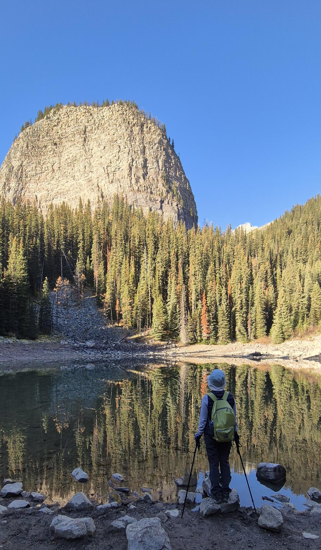 눈이 내리고 기온이 낮아 가져간 아이젠을 차용하고 트레킹을 했습니다.그것 또한 로키이기때문에 참좋았습니다.그리고 남은 트레킹내내 이보다 좋을 순 없다 싶을 만큼 화창하고 맑은 날씨에 좋은 공기 같이 여행하는 동반자