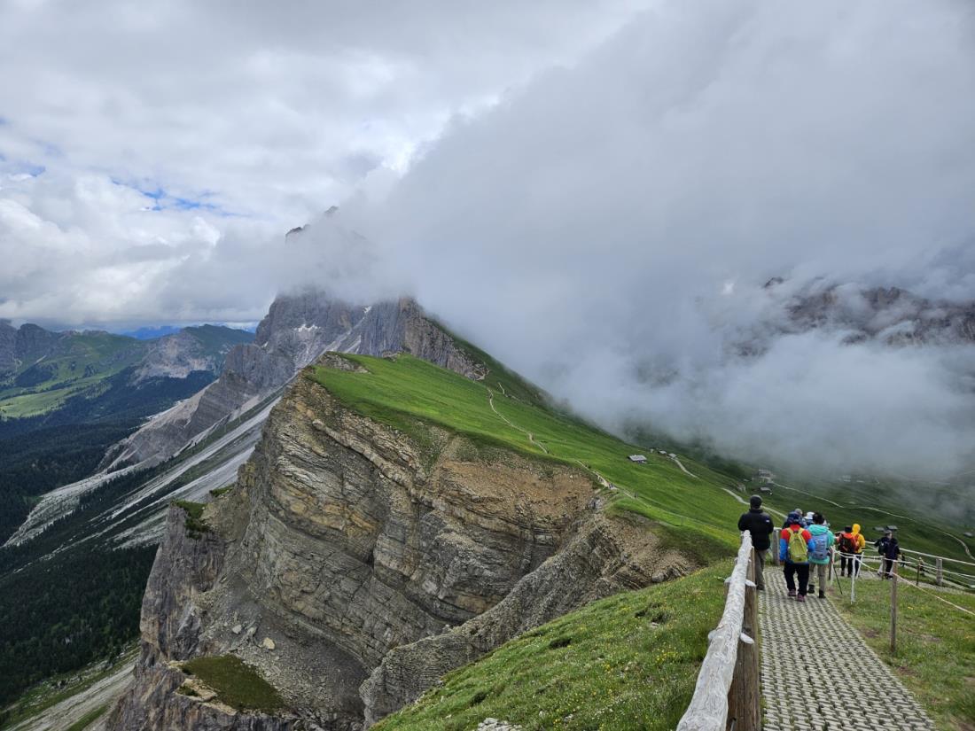 여행기간 중 일부 날씨가 좋지는 않아 세체다, 알페 디 시우시를 간 날에는 운무로 인하여 풍광을 제대로 누리지 못한 아쉬움은 남았으나 전반적으로 날씨가 나쁘지만은 않아 다행이었고 같이 여행하는 일행들이 다들 원만하고 인솔자 한주영 대리님이 뒤에서 묵묵하게 이끌어주어 편안한 일정이었습니다. 다만 몇가지 아쉬운 점은 있었고 이에 대하여 보완이 이루지면 좋겠습니다. 1. 수신기의 상태가 좋지 않아 소리가 잘 안 들리고 수신기 충전을 마친 상황에서도 조금만 시간이 지나면 방전이 되어 전원이 들어오지 않는 등 수신기의 전반전인 점검이 필요한 것으로 보입니다. 2. 비엔나, 베로나, 밀라노 도시 투어가 포함되어 있는데, 돌로미티에 보다 치중을 한 일정으로 구성되면 좋지 않을까 싶습니다. - 여행 고수님들이 워낙 많으셔서 위 도시는 다녀오신 분도 많고 위 도시 투어는 더위에 지쳐 힘들어하시는 분들이 많았습니다. 돌로미티를 둘러보고 싶어 참여하신 분들이 많아 비엔나 in 보다는 베니스 in 등을 검토하여 '브라이스 호수' 등도 둘러보는 일정이 포함되면 좋겠습니다. 3. 베로나 일정 시 2박을 한 호텔은 도시 외곽에 있는 호텔로 근처 산책을 전혀 할 수 없는 곳이었습니다. - 베로나 오페라축제 등으로 인하여 베로나 내 호텔을 선정하는 것이 어려웠을 것으로 보여 외곽에 호텔을 선정한 것은 충분히 이해가 가나, 이번 일정에 선정된 호텔은 베로나 시내에서 차로 20여분이 넘는 거리에 있는 외곽에 위치해있는 호텔로 근처를 산책할 요소가 하나도 없는 호텔이었습니다. 4. 식사가 너무 과하게 나왔습니다. - 3dish로 구성된 밀플랜을 미리 짜서 일정표에 포함하여 보내주는 등 식사를 많이 신경쓴 것으로 보이나, 자주 나왔던 햄, 치즈 등으로 구성된 안티파스토 전채요리는 대부분의 테이블에서 남아 버리는 경우가 많았습니다.