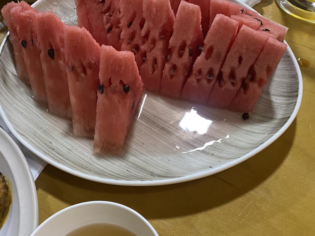 1. 여러분 , 호카는 안 됩니다! 등산화로 호카를 가져갈까 생각중이신가요? 죽죽 미끌어집니다. 부디 다른 등산화를 챙기십시오. 2. 고산은 4천 이상에서만 생긴다? 내가 머리가 띵한건 기분탓이다? 아닙니다 여러분, 냉큼 타이레놀을 드세요. 처방받아 오는 약도 효과가 좋다고 합니다. 3. 등산에 무슨 양산이냐? 아닙니다. 여러분!! 현지 산악가이드도 꼭 챙기는 양산 남녀노소 구분 없이, 이글대는 키르키스의 태양아래 자신만의 그늘을 만들어보세요. ‘암막’이 더해진 우양산이면 더할 나위 없습니다. 4. 혜초 캠프지의 겨울 침낭은 성능이 좋아서 따로 다른 침낭을 챙긴다거나 하시지는 않아도 될 것 같습니다 (7월말 기준). 5. 바지도 두꺼운 바지는 거의 필요가 없었습니다 (이것도 7월말 기준). 이외 짐가방은 두 개가 필요하다! 혜초캠프지로 갈때는 배낭에 다 넣어서 직접 짊어져야한다고 생각했는데 혜초캠프지로도 3kg이하의 물품을 올릴 수 있습니다. 가방이 없는 사람들한테는 비닐 봉지를 주시지만.. 비닐은 적게 쓸 수록 좋으니까요.. 알틴 아라샨산장에서부터 필요한 세면도구는 칫솔, 치약뿐. 알틴 아라샨 산장에서는 샤워를 할 수가 없고 (몸담그는 온천만 가능) 작은 개수대가 몇몇 있을 따름으로 세수는 클렌징 티슈로한다고 생각할 때 다른 건 양치만 가능합니다. 그나마 혜초 캠프지에서는 수도시설이 없기 때문에 식수로 입을 헹구셔야 합니다. 이상으로 ‘생생정보통’은 마치고 호카를 신고 휘청대는 저를 불안한 눈빛을 지켜보신 김도훈 인솔자님. 어려움이 있었을 이번 여행을 끝까지 잘 이끌어주셔서 감사합니다. 현재 맡고 있는 지역 말고도 다른 여러 지역에서 그 인솔력을 뽐낼 기회를 잡으실 수 있길 기원합니다! 마음은 말보다 행동을 통해 더 잘 전해진다는, 아는 진실을 또 다시 깨닫게 해주신 현지 바끗 그리고 ‘중기’ 가이드님. 키르키스에 대한 기억을 더욱 좋게 만들어주셔서 감사합니다. 그리고 함께 트래킹했던 다른 선생님들 너무 감사드립니다. 혼자 갔지만 혼자간것 같지 않게 더 좋은 추억을 만들 수 있었던 것, 다 선생님들 덕분입니다. 아름다운 풍경은 다른 후기에도 많으니 저는 먹을 것 사진 을 투척하고 글을 마무리하겠습니다. 저 빵이랑 과일이 엄청 맛있거든요!! 같은 수박이겠지만 다른 수박이었고 단순한 빵같지만 단순한 빵이 아닙니다 여러분 (특히 따끈하다면!!) . 궁금하시죠? ㅎㅎ 키르키스로 고고!!!!!
