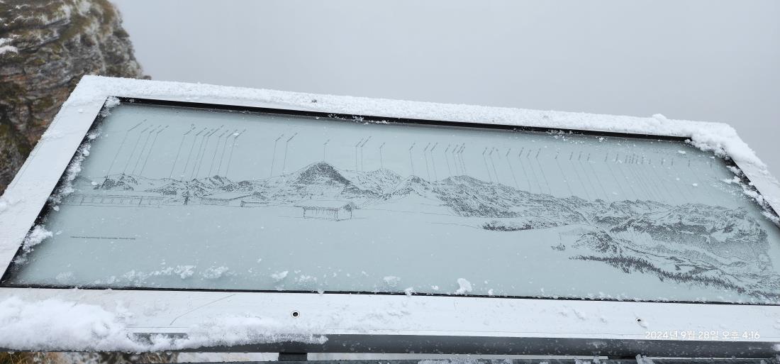 일행들이 찍어올린 원거리 사진은 이동 기차나 차량에서 찍은 사진들 입니다.) 출시 첫 모객 상품이라 불안한 마음을 갖고 여행을 결정했는데...역시! 예상 보다도 훨씬 실망스러운 여행이었다. 그나마 식사와 숙소는 기대에 걸맞을 정도였다. <특급열차> 상품의 간판으로 내걸었던 네번의 특급열차 탑승은 세번이 예약 내용과 달랐다. 9월26일 여행출발을 1주일 앞둔 9월20일에 여행사 사과문과 함께 글래시어 익스프레스 1등석이 2등석으로, 베르니나 익스프레스 특급열차 1등석은 일반열차 1등석으로 진행된다는 문자가 왔다. 황당 그자체! 여행을 가야하나? 말아야 하나? 하다가 여행을 떠났다. 또, 처음으로 탔던 루체른-인터라켄 익스프레스는 지금까지도 왜 마이링겐역에서 내려 전용버스를 타고 인터라켄으로 이동했는지 모른다. 설명이 없었다. 버스를 타고 이동해도 창밖 풍경은 다르지않다. 하지만 혜초에서도 기차여행을 내세울때는 안전띠를 하지않고 좌우경치를 좀 더 안전하고 편안하게 즐기며 사진도 찍을 수 있다는 점이 컸을 것이다. 특히, 9일차 글래시어 익스프레스 탑승날은 이번 여행 중 스위스 도착한 1일차를 제외하고 유일하게 트레킹 없이 기차를 약 5시간을 타는 날이었다. 1등석이 2등석으로 바뀌며 기차에서 서빙해주는 식사를 하면서 좌우 풍경을 즐기기에 턱없이 좁았다. 앉은 자리에서 겨우 고개만 돌려 쳐다보는.... 유네스코 세계문화유산에 등재된 철도의 일부인 랭크바이스철교(Landwasser Viadut)를 지나는 동영상 은 인솔자가 찍어 단톡에 올려주는 것을 공유해야하는 지경으로 오버알프패스(Oberalp Pass)도 탑승하고 얼마지나지 않아 내가 앉은 반대편으로 허무하게 지나가 버렸다. 11일차 탑승한 베르니나 일반열차는 현지 철도의 전기 문제로 베르니나 노선 전구간의 1/3 정도 구간을 철도청에서 제공하는 버스로 이동했는데 마침 구간이 해발고도가 높은 고갯길 구간이라 멀미가 좀 있었다. 역사ㆍ문화탐방여행은 아니었지만 매일 저녁식사 후 앉은상태의 실내공간에서 다음 날 이동중 만날 중요 포인트에 대한 설명이 없었던 점도 아쉬움이 크다. 수신기도 없는 상태에서 이동 중 선두에 선 인솔자 주변 몇몇 사람만 들을 수 있는 간단한 설명은 나는 해당사항이 없었다. 그리고 여행 확정 인쇄물에는 특급열차는 지정석으로 예약된 좌석에 착석하라는 문구와는 달리 구역만 정해주고 자유롭게 앉게해서 패키지여행에서 이동차량 내 좌석으로 불편함을 느끼는 문제를 똑같이 느꼈다. 또, 특급열차에 있는 파노라마 창이 불편한 점이 많아 한국여행객들이 선호하지 않는다는 인솔자의 설명을 들을 때는 '그럼 왜 네번의 익스프레스 탑승을 내세우며 비싼 상품가로 호객했나?'싶은 생각도 들었다. <여행 중 날씨-홈페이지 상품안내와 아~주 많~이 다름> 여행상품 결정에 중요 지표인 홈페이지 상품안내와는 많이 다르고 심지어 출발 직전 안내문자 보다도 5~10°C이하의 기온 이었다. 4일차 포도밭 트레킹과 11일차 올리브 트레일을 제외하고 트레킹지역은 해발고도가 최저1420m~최고 3080m로 고도에 따른 날씨안내가 많이 부족했다. 심지어 트레킹 구간은 아니었지만 이동경로에 있던 코르바치 전망대는 3303m로 가기 전날 밤 내일 기온은 -7°C~-5°C로 예상된다고 했다. 스위스에 있는 12일 동안 강수확률 50% 이상인 날이 8일로, 전망대에 6번 올라가서 원거리 전망 가능했던곳은 딱 한번 이었다.(원래 일정은 7번의 전망대 오름이었으나 3일차 크라운 전망대는 시야가 나빠 아예 가지않았음) 인솔자 曰 "스위스 여행에서 전망대 올라가서 전망을 볼 수 있는 확률은 70%" 그런데 7번 중 1번이라면... 애초에 여행일자 설계가 잘못 된것 아닐까?? 인솔자 曰"이상 저온, 이상 날씨"라 한다. 참고로 인솔자는 스위스 여행경력이 많고, 스위스 관광청의 초청으로 컨퍼런스 참석 경험도 있다고 했다. 나는 여행 예정일 보름 전부터 스위스 날씨를 검색해 보고 있었다. 눈 예보를 보고 혜초에 아이젠 을 준비 해야하나? 문의 했었다. 아이젠이 필요한 날씨면 일정 변경이 있을 거라고 준비하지 않아도 된다는 안내를 받았다. 그런데 7일차 베트머호른(2647m)전망대에 올라 알레치 빙하를 보는 날, 비 예보가 있었는데 우리 일행이 전망대에 올랐을때는 이미 눈이 쌓여있어 미끄러운 상태였다. 트레킹 시작 전 특별히 안전 걸음에 대한 주의나 몸풀기도 없이, 걸음이 늦은 일행을 인솔자 뒤에 배치하고 하산 트레킹을 시작했다. 간간히 "허리 펴고 엉덩이 빼지말고 걸으세요"라는 주의 외에는 각자의 안전은 각자가 책임지고 걸어 내려갔다. 1시간 정도 지났을 무렵 갈림길에서 원래 예정되어있던 무스플루(2320m--이정표 안내로는 45분 거리)로 가지않고, (미끄러운 길을 빨리 피하려고)고도를 빨리 낮출수 있는 베트머알프(1970m) 호텔로 바로 가는 길을 택했다. 원래 일정은 무스플루(2320m)로 걸어 내려가 무스플루에서 리더알프(1905m)까지 케이블카를 타고 하산하여 베트머알프에 있는 호텔까지 하이킹 하기로 되어있었다. 변경한 길은 예상대로 눈은 많이 녹아 있었지만 물기있는 내리막 경사길로 이어졌다. 이 길 위에서 인솔자와 거
