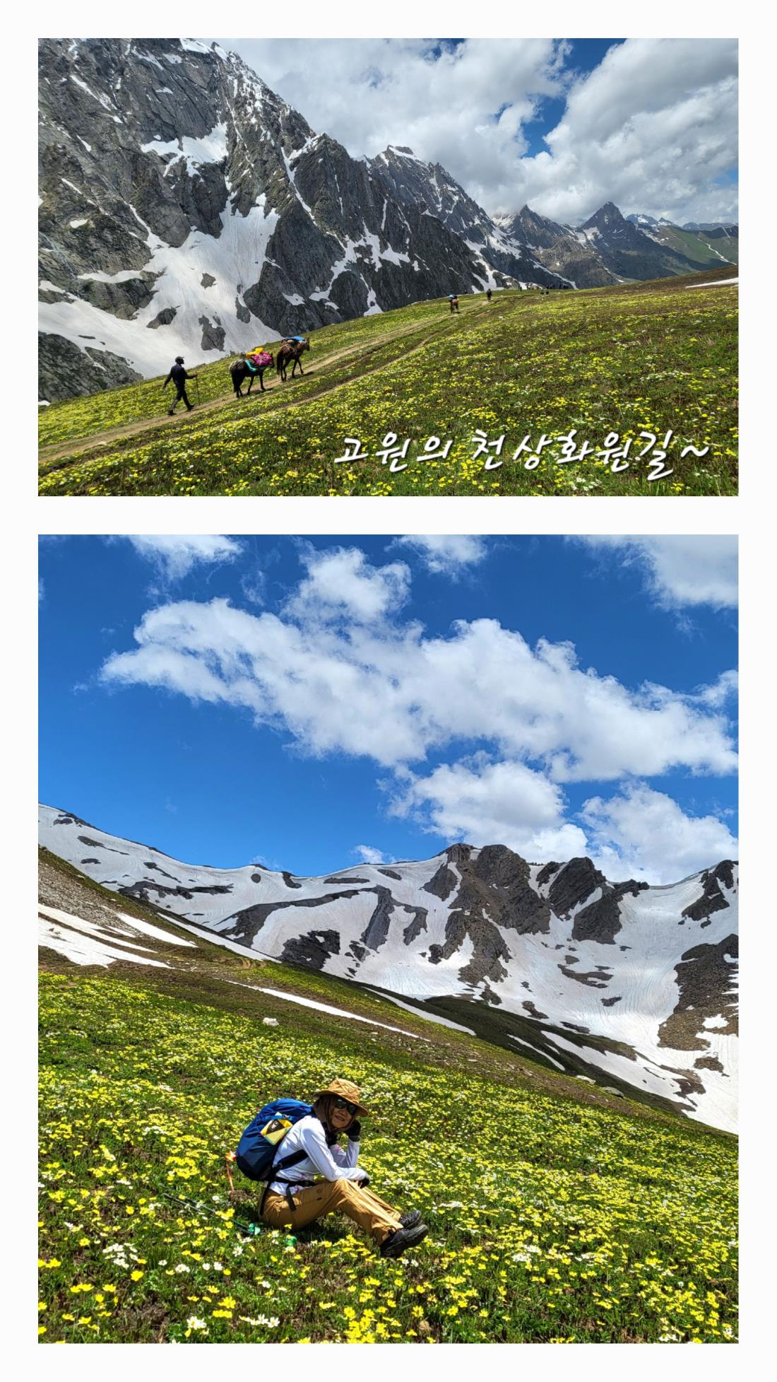 1. 야생화사랑꾼인 나에게는 매일매일이 천상화원길이었으며 2. 4,100m/4,200m/4,080m 3대패스 저마다의 파노라마엔 탄성이 절로 터졌고 3. 텐트속 빗방울전주곡은 힐링 그자체였으며 대자연속 초원의 양들과 함께한 나날들 그리고 몽실몽실 피어오르던 파아란 하늘까지 4. 첫 출정임에도 19명의 팀원과 뮨길현대리님의 리더쉽 그리고 현지스텝들의 호흡까지 착착~ 모두가 산을 사랑하는 한마음으로 성공적인 안전산행을 마쳤음을 감사드립니다. 5. 다행히 고산증상이 느껴지지않아 이제 10월의 <무스탕트레킹>확정을 기다리며 조심스레 5,000m를 꿈꿔본다. 은퇴생활 3년차~ 내 든든한 동반자로 혜초트레킹이 있어 오늘도 나는 행복한 사람이다.