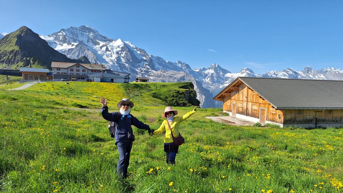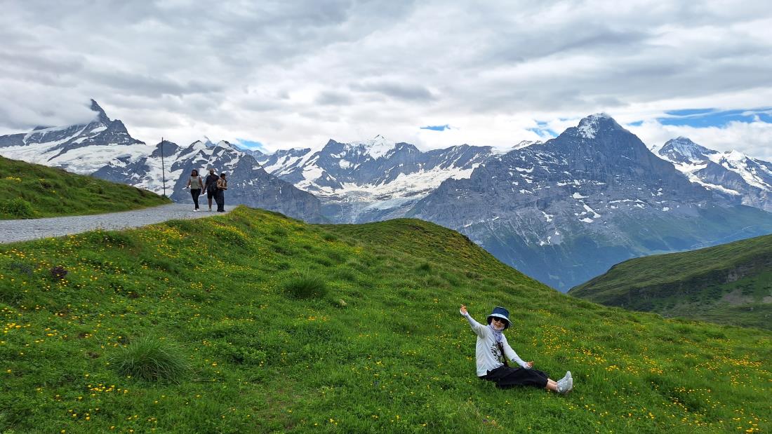 근래 기후 온난화로 인한 스위스에 발생하는 안 좋은 뉴스를 보고 하루라도 건강할 때 얼른 다녀와야겠다는 마음에 결심하고 다녀온 스위시 여행은 한마디로 꽃대궐 꽃동네 였다 지금도 맑은 공기속에서 설산과 함게 흐드러진 수 많은 노랑 빨강 보라 파랑 등 갖가지 색의 마치 예쁜 꼬맹이 별을 뿌려 놓은 듯한 야생화를 보며 걷던 순간들이 눈에 선하다 날씨도 우리를 도와 하이킹 시간엔 구름이 커튼을 쳐주고, 정상의 전망대를 볼 때는 파란하늘에 구름한점 없는 순간을 만들어 주었다 감사 감사~~일행에 날씨요정들이 많은 듯~~ 혜초여행사에 대하여 다른 패키지 여행과는 다르게 차별화된 점이 있다는 풍문을 듣고 이번에 처음 혜초와 함께 스위스여행을 다녀오게 되었다 여유롭게 일정을 잡고 개인 건강 상태에 따라 참여여부를 자유롭게 할 수있게 선택권을 주어서 무리하게 강행하지 않는 점이 좋았다 조그만 불평이 있을 시 즉시 해결하려 노력하는 서곤대리님 수고 많으셨어요~~ 그린델발트에서 하이킹하고 스카이워크 있는 전망대에서의 식사는 넘넘 좋았어요~~^^ 첫날 공항 미팅시 최우진 과장님의 소정의 깜짝 선물도 입가에 미소를 머금게 했네요~~ 샤모니에서 자유시간과 예쁜 핑크폰트 식당에서의 시간도 즐거웠습니다 지금도 그 식당앞 빙하수가 콸콸 흐르며 난간에 서면 에어컨보다 시원한 바람에 와~~했던 순간이 떠오릅니다 쉴트호른은 아쉽지만 대신 방문했던 랭커호프리조트는 눈과 입을 즐겁게 해 주기에 충분했네요~ 스파에서 통창을 통한 설산과 초원의 모습은 두고두고 또 오고 싶을 듯요~ 좋은 여행 감사드립니다 더 좋은 여행 개발 기대할께요~~~^^