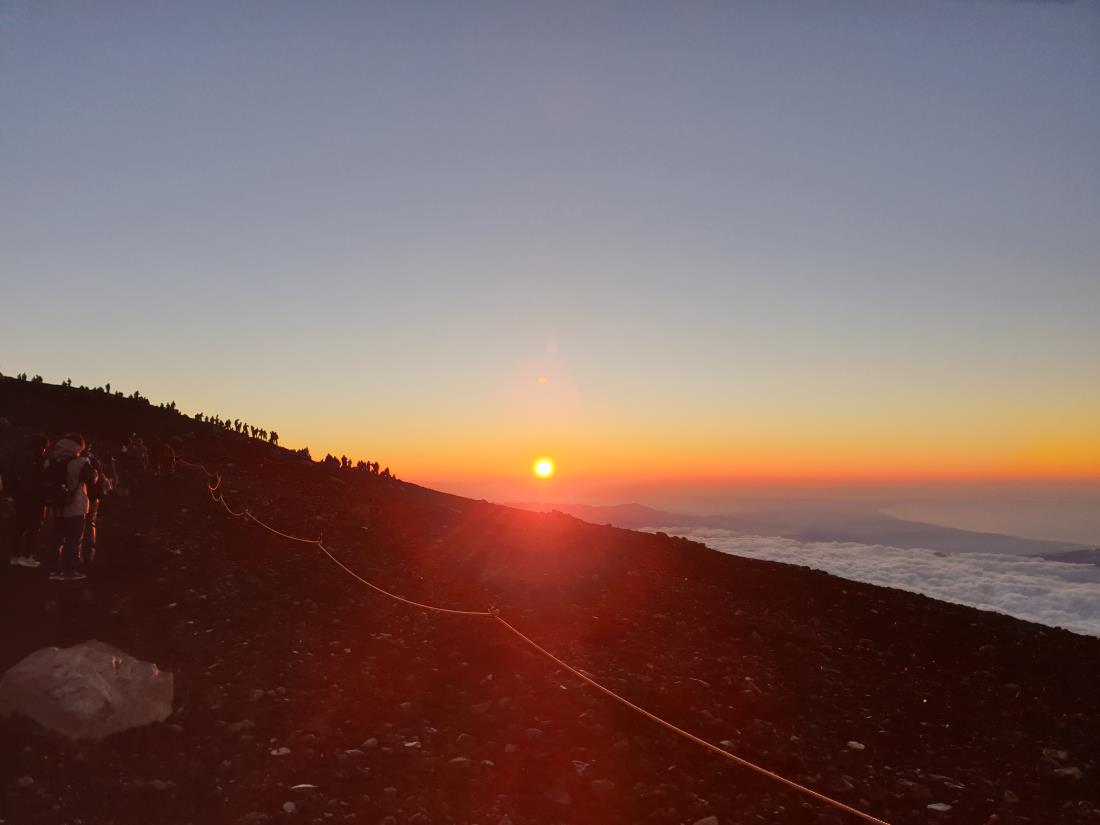 코로나로 인해 가지 못하고 이번에 다녀왔다 3일내내 날씨가 화창해 하늘뷰가 다한 것 같다 첫끼 점심메뉴는 일본의 맛을 느낄 수 있었다 첫날 5합목 주차장에 일정보다 다소 늦게 도착하여 저녁 7시부터 산행을 시작하여 8시30분쯤 고라이코산장에 도착해 늦은 시간에도 불구하고 도시락으로 저녁을 챙겨주어 오히려 카레덮밥보다 좋았다고 생각한다 산장에서 계속 얘기하는 외국인으로 인해 뒤척였지만 계획대로 준비하고 오전 1시에 출발할때의 하늘은 별총총하여 일출의 기대를 한껏 복돋아 주었다 산장부터 1000m를 계속 치고 올라가야 하니 생각보다 경사가 급하였고 고산병까지 고려해야 했다 합목마다 쉬고 물을 마시고 간식까지 잘 챙기며 천천히 올라가니 붉은 여명이 반긴다 5시쯤 일출이 올라오고 그 광경에 와~~멋지다를 외치며 감상을 하고 분화구를 환종주를 한다. 발아래 깔려있는 운해도 멋지고 후지산 그림자도 멋졌다. 정상비는 인증하려는 사람들과 긴줄이 만들어져 있어 옆에서 살짝 찍고 하산을 시작했다 꼭 정상비에서 제대로 찍으려면 분화구 환종주전에 하는 것이 좋을 것 같다 내려오는 길은 경사가 급하니 다리에 많은 힘이 들어간다. 스틱을 잘 사용하여 내려가야 했고 작은 화산석으로 인해 미끄러웠다. 태풍으로 인한 비로 마르지 않아 화산재가 날리지 않아 좋았다 그렇게 7합목까지 와서 규동으로 간단히 식사를 하고 6합목에서 맥주한잔 하산주 드링킹. 내려오는 내내 하늘뷰는 너무 좋았다 날씨가 좋아서인지 하산길에 많은 사람들이 올라온다 10시 30분쯤 5합목 주차장 도착하여 1시간 이동 후 온천욕을 하니 개운하다. 점심식사 후 다시 나고야로 가는 도중 좋은 날씨에 하늘을 자꾸보게 된다 호텔에서 짐을 풀고 다시 모여 나고야 시내를 구경하며 저녁식사 장소로 이동하여 샤브샤브와 생맥주 한잔과 사케를 참석하신분이 베풀어주시어 감사하게 먹었다. 배부르고 맛있게 먹은 저녁이었다 다음날 조식은 나름 괜찮았고 나고야에서 공항까지 대중교통을 이용하여 가는것도 경험삼아 좋았다 30분정도 제주항공이 지연되긴 했지만 무사히 2박3일의 후지산 트레킹 일정을 마쳤다 한번은 꼭 가봐야 할 산이고 정상에 올라갔다면 분화구 환종주는 한번 해 보는 것도 좋을 것 같다 후지산 트레킹은 개인적인 일정보다 경험많은 여행사를 이용해서 가는것이 좋을 것같다. 온전히 산행에만 집중할 수 있도록 말이다 고산병에다 생각보다 난이도 있는 경사라 신경을 써야한다 여정내내 함께 한 혜초의 김해운 담당자의 설명에 감사드리고 함께하신 분들도 다 좋으시어 기억에 남는 후지산 트레킹었다 나고야에서 후지산까지 왕복 8시간 이동시간을 단축한다면 올라갈때 좀 더 일찍 올라가 휴식시간을 가지고 날씨가 좋다면 일몰도 감상할 수 있지 않을까 생각한다. 하산 후 여유시간이 생기면 기념품 살수 있는 시간도 확보할수 있어 좋을것 같다. 그리고 항공기 예약번호를 미리 알려주어 좋은 자리를 확보한다면 좋을것 같다.