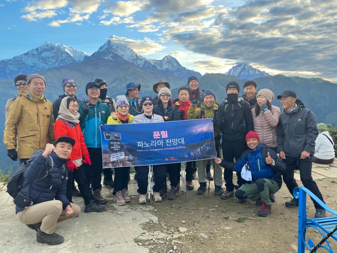 푼힐 전망대에서 찍은 단체 사진 속 모든 분들의 표정이 밝은 것을 보니 여정이 어떠 했는지 화면 너머로도 느껴집니다. 그림 같은 히말라야 풍경 사진도 감사합니다.