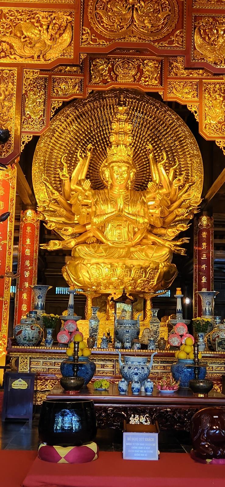 나의 성향이 이러니, 상품의 일정 가이드만 괜찮으면, 이동수단 숙박 식사는 웬만하면 수인 한도內이다. 이번 혜초의 북부 베트남 여행은 판시판산 깟깟마을 따반마을 함종산, 중월 우정의다리, 하롱베이의 베트남가옥 일몰 동굴 라군, 하롱 까이잠전통시장. 번롱의 나룻배(체험) 바이딘사원 등을 보고 즐기고 체험하고 답사하는 것이다. 이중 바이딘사(원)는 우리의 사찰과는 많이 달라 특히 인상이 깊었다. 몇자 언급한다. 육지의 하롱베이라 하는 '닌빈'에 있는 동남아 최대 규모의 바이딘 사(원) 우선 전각의 명칭이 우리와 다르고 규모도 엄청났다. 이점은 중국과 닮았다. 전각사이는 전동차로 이동하고 바오티엔탑 내에는 엘리베이터가 있었다. 사찰이라기 보다는 불교관광단지같다는 느낌이다. 석가불전 삼존불, 중앙에 석가모니불이 자리하고 대개 보살(보현 문수)이나 존자(가섭 아난)가 좌우 협시한다. 여기는 가섭존자와 아난존자가 협시한다. 삼세불전 삼세불, 과거불 현세불 미래불 관세음전 천수천안관세음보살상 아라한전?(나한전): 현판이 없어 그냥 붙여 본 명칭이고 아라한(나한) 복도라고 해도 될 듯. 바오티엔 불사리탑, 13층불탑(내가 보기엔 12층전탑이다) 종각 그외 포대화상 좌상 입상(우리는 좌상이 전부인 듯) 사진 설명 1.석가불전의 금동석가여래좌상 2.바오티엔불사리탑(12층? 13층?) 3.관세음전의 금동천수천안관음보살좌상 |