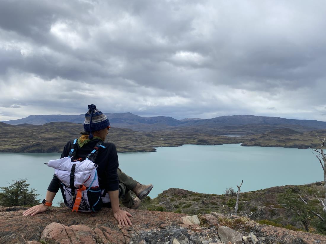 아래로는 에메랄드 빛 호수가, 산자락 사이로는 둘레길이 펼쳐져 있는 아름다운 토레스 델 파이네