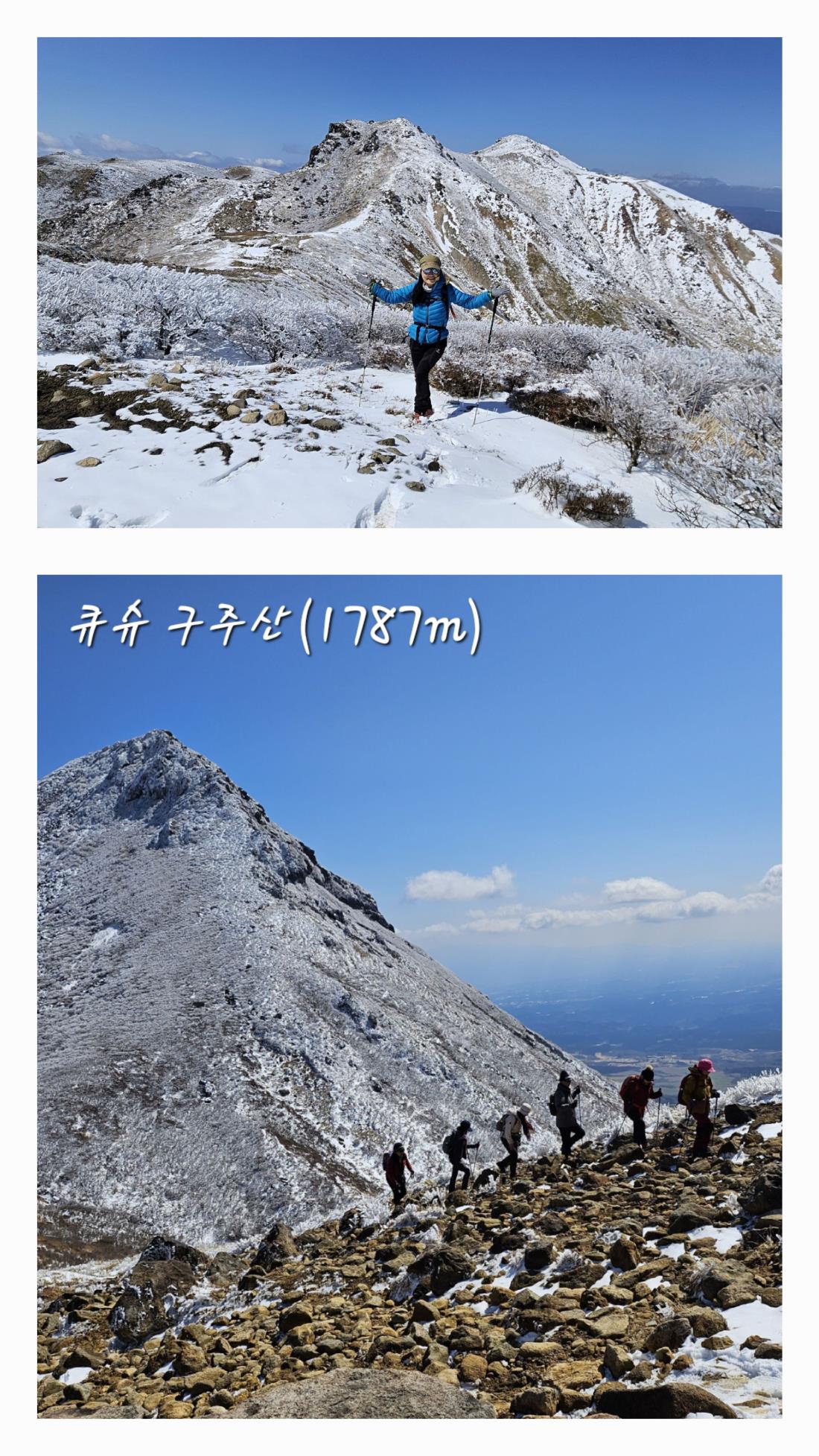 특히, 4월에는 운젠산/구주산/아소산 모두 철쭉군락지가 있어 핑크빛세상 황홀경속으로 빠져들겠더라. 몇년흘러 지인과 다시 오고싶은 곳으로 찜~ 이번 여행의 뜻밖의 선물 벚꽃 대신 눈꽃!!! 전날밤 밤새내렸던 비가 구주산(1787m)에 눈꽃 피어놓고 우리를 반겨주었으니 글 적는 이순간에도 여운이 남아 미소짓는다. 곰돌이 푸우 형제 같았던 한규호/이윤호 인솔자 두분의 케미로 여행내내 즐거움을 더해 주시고 23인의 많은 인원에도 원할하게 안전트레킹을 마치게 됨을 모든 분께 감사드립니다. PS. 마지막날 산행후 곧장 온천욕에 필요한 개인 수건을 꼭 챙겨 가세요( 없으면 구매)