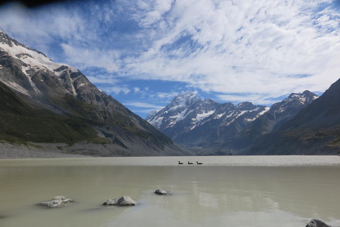 여담: 세모 모양의 Mount Cook Chalets에서 하룻밤 묶었는데, 밤 11시경 매형과 함께 밤하늘의 별을 봤다. 쏟아질 듯이 별이 많다. 네팔에서의 비슷한 감동이다. 그런데, 간격을 맞춰 열 몇 개의 별이 줄지어 이동하는 것이 아닌가? 비행기인가, 헬기인가? 아무런 소리도 들리지 않았다. 우리는 정녕 UFO를 본 것인가?