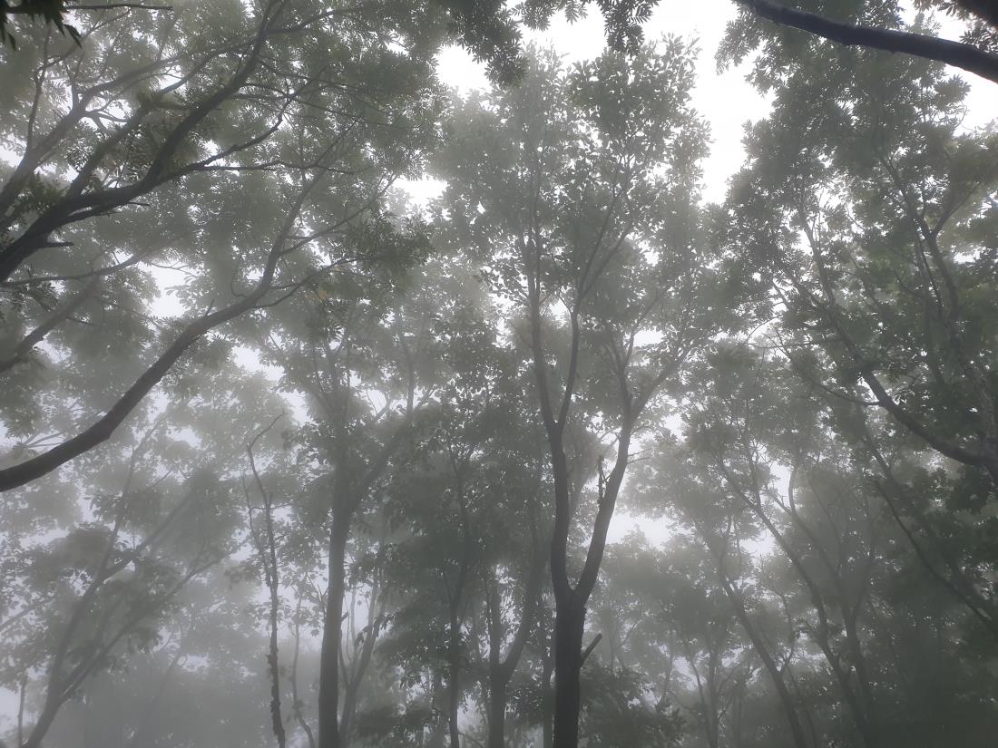 성인봉을 오르는 날, 나리 분지에 도착하기 전에 알봉 전망대에서 불어대던 그 바람은 몸을 가눌 수가 없고 안개와 안개비가 미친듯이 흩뿌렸지만 내몸이 느끼던 건 후련함과 희열이었다. 나리분지를 지나 분지에 살던 사람들이 저동항까지 생계를 위해 오르내리던 비밀의 숲을 오르는데 조릿대로 알고 있는 산죽이 무릎 높이부터 어깨 높이까지의 산죽의 바다를 이룬 길을 지나다, 일반적인 등산로가 아닌 길이지만 흔적없는 길을 안개를 헤치며 안개비를 가르며 그렇게 오르다가 돌아다본 지나 온 길, 무심히 올려다 본 나무사이로 핏줄처럼 올려다 보이던 흑백 사진같은 몽환적인 풍광은 그냥 자연, 사람의 손이 타지 않은 그런 원시림이 거기에 있었다.