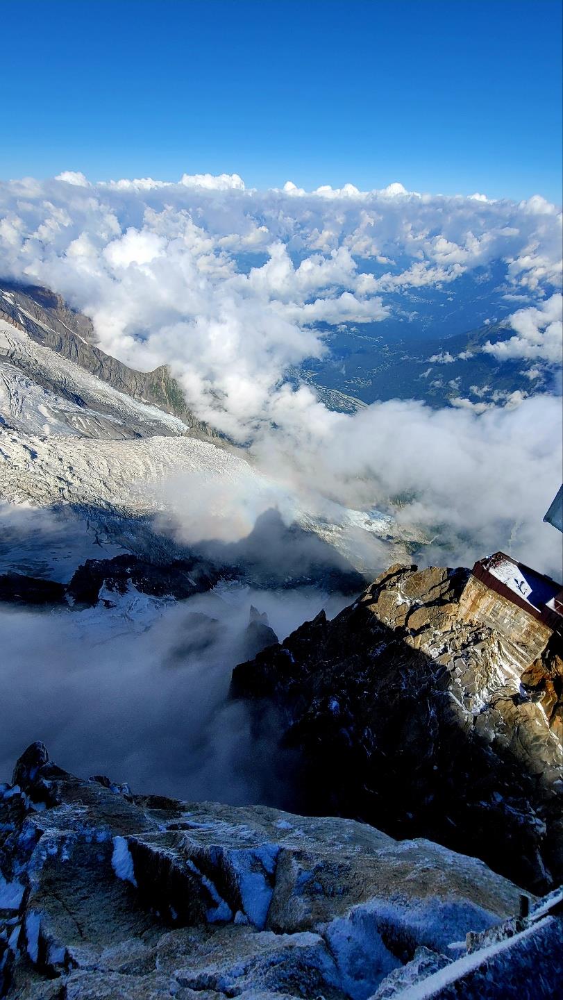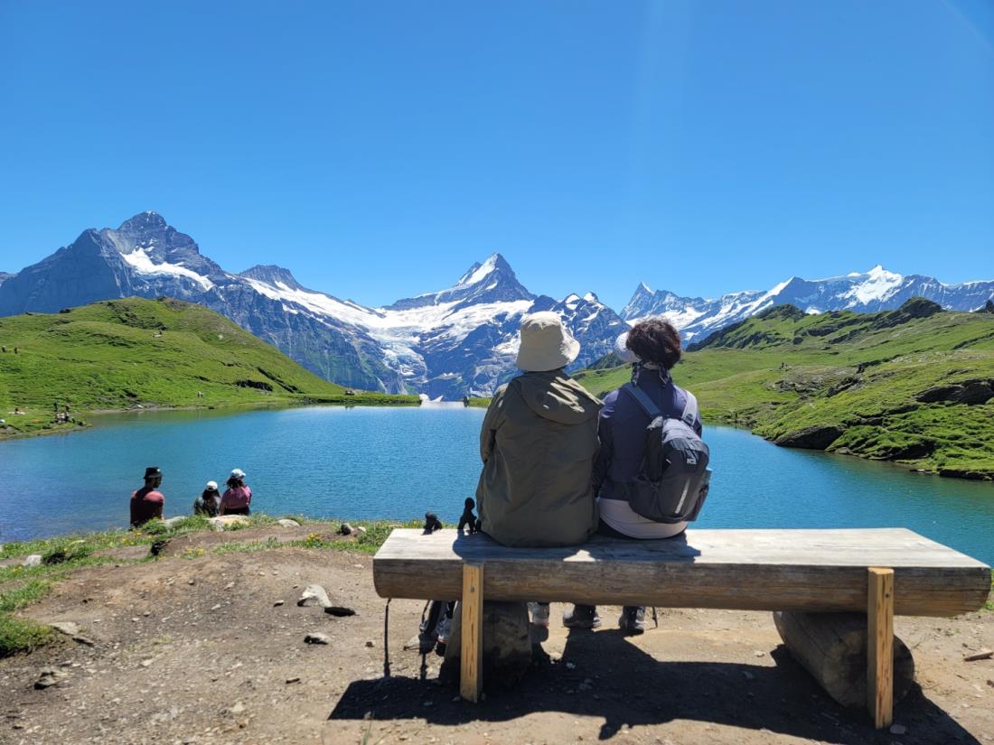 날씨까지 운이 좋아 3대 미봉 정상을 깨끗하게 볼 수 있었고, 야생화 만발한 알프스 산록을 유유자적 산보한 기억을 오랫동안 잊지 못할 것 같습니다. 이번 19명의 신청자들이 2분을 제외하고는 거의가 75세에서 65세에 이르는 연장자들이셨는데도 한 분도 탈락 없이 전 일정을 무난히 소화할 수 있어 좋았습니다. 코로나 여파로 아직도 여행여건이 제대로 작동을 하지 않아 가끔 애로사항이 발생했는데 인솔한 혜초 박대훈 과장님과 본사팀의 기민한 대응으로 무리없이 진행을 할 수 있어서 역시 경험이 많은 여행사를 선택한 것이 잘한 선택이었다고 생각하며, 수고하신 분들께 감사를 드립니다. 여행 중 잠깐씩 메모한 내용을 전달합니다. 현장의 생생한 분위기가 전달되었으면 하는 바램입니다. 제5일(7/1 금) 잔뜩 흐린 날씨에 빗방울까지 떨어지고. 융프라우(젊은처녀)가 얼굴을 보일지? 조금씩 파란 하늘이 보여 희망이 보이고... 그러나 융프라우 전망대에 오르니 정상은 운무 속에 가려 보이지 않고. 실망한 발걸음 돌려 내려가려는 순간 기적처럼 햇살이 비치고 파란 하늘에 정상이 선명하게 들어난다. 환호성을 올리며 정상 모습을 사진에 담느라 물아지경. 잠시 후 하산길에는 다시 빗방울이 듣는다. 무슨 공덕인지 선명하게 빛나는 정상을 알현하는 행운을 맛 보았다. 제6일(7/2 토) 오늘은 융프라우 보는 마지막 날 아침에 일어나니 햇살이 화창하여 기대가 크다. 어제는 융프라요흐(3454m)의 top of europe 전망대에서 융프라우(4158m)를 바라 봤다면, 오늘은 그린델발트 피르스트(2175m)에서 융프라우를 건너다 보는 일정이다. 구름 한 점 없이 맑은 하늘 아래 건너다 보이는 융프라우(4158m) Monch(4107m) Eiger(3970m)의 설산 연봉들이 손에 잡힐 듯 건너다 보인다. 특히 바흐알프제(2286m)의 호숫가에서 바라다 보는 알프스 연봉들의 모습은 감동 그대로이다. 오늘은 31도까지 기온이 올라가 덥다. 제7일(7/3 일) 마테호른 지역 체르마트 체류 첫 날. 아침에 일어나니 날씨가 화창하다. 한낮 기온이 31도까지 올라간다 하여 두꺼운 옷은 챙기지 않는다. 고르너그라트 전망대에 올라 눈 쌓인 설산과 빙하를 바라보다 눈을 돌리면 마테호른 봉우리가 구름을 내뿜고 있다. 저멀리 계곡사이로 어제까지 찾았던 융프라우 3봉이 아스라이 바라다 보인다. 리펠제 호숫가에서 물에 비친 마테호른을 바라보다. 바람에 물결이 일어나니 금방 사라진다. 퓨리에서 체르마트로 내려오는 길에 눈 녹은 물이 엄청나게 내려오는 협곡을 통과한다. 시원한 맥주 잔을 앞에 두고 더위 속 갈증을 달래본다. 내일은 비 예보가 있어 걱정이다. 제8일(7/4 월) 밤새 꾸르릉거리는 천둥소리와 지붕 위로 빗방울 두드리는 소리에 잠을 설치다. 아침에 눈을 뜨자마자 베란다로 나가 동녁하늘을 보니 구름이 걷히며 붉은 기운이 퍼진다. 다행이다 생각하며 아침식사를 마치고 배낭을 꾸려 나가니 빗방울이 떨어진다. 에휴 오늘은 아무래도 비를 맞을 모양이다 체념하고 체르마트에서 수네가로 오르는 푸니쿨라에 오른다. 수네가에서 다시 케이블카로 갈아타고 블라우헤르트에 내려 하늘을 본다. 신기하게도 구름이 걷히며 파란 하늘과 설산이 들어나고 마테호른도 얼굴을 내민다. 즐거운 마음으로 슈텔리제 호수까지 꽃구경하며 걷는다. 에델바이스가 환한 얼굴로 우리를 반긴다. 호수에 비친 마테호른 봉우리를 사진에 담느라 시간 가는 줄 모르다 다시 블라우헤르트 정류장으로 발걸음을 돌리자 점차 구름이 많아지며 마테호른 봉우리도 얼굴을 감춘다. 천운으로 기가 막힌 시간대에 구름걷힌 맑은 하늘아래 융프라우와 마테호른을 알현했다며 우리는 복 받은 사람들이다고 모두를 기뻐한다. 산장에서 점심식사를 하는 동안 다시 마테호른 봉우리가 보이고 맥주 한 잔으로 축배를 나눈다. 체르마트역에서 기차를 타고 테쉬역에서 내려 샤모니로 가는 전세버스에 오르자마자 비가 쏟아지기 시작한다. 내리다 그치다를 반복하는 빗속에 2시간 반을 달려 프랑스 땅 샤모니에 도착하니 맑은 하늘아래 에귀디미디 몽블랑 봉우리가 손에 잡힐 듯 보인다. 저녁식사를 마치고 샤모니 중심가를 돌아보려니 빗방울이 떨어지기 시작하여 호텔로 돌아오니 천둥번개와 함께 굵은 빗줄기가 세차게 쏟아진다. 내일은 몽블랑전망대에 오르는 마지막 산행일정인데 내일도 과연 행운이 따를지 자못 기대가 된다. 제9일(7/5 화) 3대 미봉 마지막 일정으로 샤모니에 왔다. 몽블랑(4810m)의 에귀디미디 전망대(3842m)에 오르기 위해서다. 저녁을 먹고 샤모니 시내를 돌아보다 보니 빗방울이 떨어진다. 빗줄기는 점차 굵어져 천둥번개와 함께 제법 세찬 비가 내린다. 아무쪼록 내일은 날이 맑게 개이는 또한번의 행운이 찾아오기를 기도하며 잠자리에 들다. 자다 깨어 날씨가 궁금하여 베란다에 나가본다. 깜깜한 어둠 속에 비는 잦아들고 흰구름이 올라가는 듯하니 날씨가 개일 듯 하다. 시계를 보니 새벽 2시다. 아침에 일어나 창문을 열어보니 기적처럼 날이 개었다. 주변 산봉우리에 목화송이 같은 흰구름이 뭉실거리며 올라간다. 케이블카를 2번 바꿔타고 전망대에 오르다. 주변경치에 압도되어 모