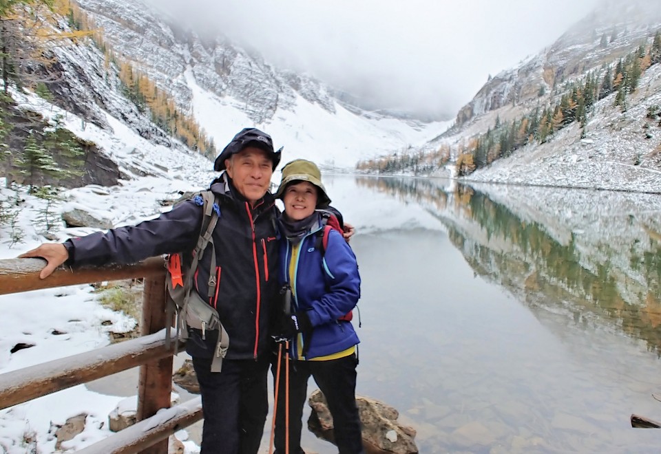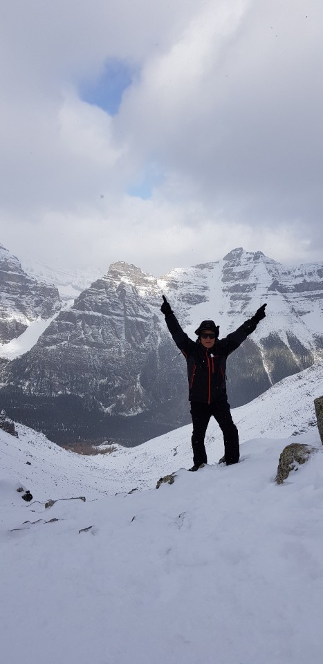 주위의 눈초리도 무시할수없는 내 생활속에 웅장한 로키산맥에 다녀왔읍니다 사진과 이야기로 듣던 로키산맥~~ 주위의 분들도 꼭 가야 산꾼이라 하던 말씀이 생생합니다 하루 하루 이동할때 가도 가도 양쪽으로 산맥으로 이어지던 로키산맥 역시 긴 여정입니다 그리고 가을과 겨울을 7일동안 지나고 온 우리의 즐거움과 행복입니다 첫 날은 피로를 3시간정도 트리킹하고 마지막날은 환상의 모레인레이크의 조망한 후 10개 봉우리를 암봉의 웅장함과 호수를 지나 조금 올라가니 완현한 가을 또 호수는 꽁꽁얼었고 뿍뿍 빠지는 눈속에서의 환상입니다 7박 8일 동안 안전. 안전, 가족과 같히 몸과 마음으로 이끌어주신 이용복차장님 예쁜 마음과 목소리로 후미에서 우리의 책임을 맡하준 김민아 대리님 정말 감사합니다 이런 믿음과 사랑으로 다음에도 해초를 찾게 되겠지요 같이 산행한 24명과 2명의 가이드님 건강하고 행복하세요