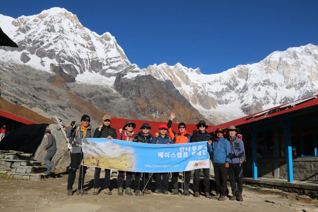 꿈에 그리던 히말라야 안나푸르나를 향해 비행기에 올랐다. 혜초여행사는 프로그램 구성이나 진행과정에 부족함이 없이 귀족의 대우를 받는 기분이었다. 인천공항 제2터미널에서 혜초여행사와 첫 미팅 후 나는 지인 없이 혼자 모집된 사람들과 총 10명이 안나푸르나로 출발하였다. 비행기는 타고 가지만 이미 설레는 마음이 히말라야에 있었던 것이다. 카트만두 공항에 도착해 입국비자를 많은 인파 속에서 받고 공항 밖으로 나오니 네팔 미남 가이드 두명이 우리를 맞이하였다. 낯설긴 했지만 한국말을 나름대로 유창하게 하는 것을 보고 깜짝 놀랐다. 우리는 버스로 픽업되어 시내 호텔에 도착했다. 호텔 현지식을 먹게 되었고 이어서 가이드의 다음날 일정에 대하여 소개를 받았고 나는 부푼 꿈을 갖고 거의 잠을 못이루었다. 이렇게 하여 다음날부터 매일매일 여행 일정을 소화해 나갔다. 여기서 중요한 것은 내가 그저 트레킹하는데 그치지 않고 트레킹 하여 마주치는 세계 여러나라 사람들과의 짧은 대화 및 인사 한마디 건네는 것이 좋았고 1박 할때나 잠시 롯지에서 쉴때 현지인들(어린이 어른들)과 인사 나누고 사진도 같이 찍고 짧게나마 그들 생활의 일면을 조금은 볼 수 있었다는 것이 나의 큰 수확이었다. 그리고 더 감동을 받은 것은 가이드(전, 후) 2명 그리고 요리사들, 포터들이 아주 밝고 긍정적으로 우리가 한치도 부족함이 없도록 최선을 다한 것이 매우 놀라웠고 감사했으며 매일매일 귀족 대우를 받은 느낌이었다. 그리고 트레킹중에는 가이드들이 산 이름을 여러 사람들이 수차례 물어도 하나도 짜증내지 않고 웃으며 가르쳐 주었고 사진 찍어달라면 피하지 않고 잘 찍어 주었다. 또한 행운의 여신이 우리에게 온 것처럼 10박12일 내내 비가 하나도 내리지 않아 최상의 트레킹을 한 점이다. 앞으로도 세계 다른 나라 여행이나 트레킹을 한다면 혜초여행사를 우선으로 선택하게 될 것이다. 왜 혜초여행사를 찾고 얘기를 하는지 이번 히말라야 트레킹을 통하여 아주 잘 느꼈다.