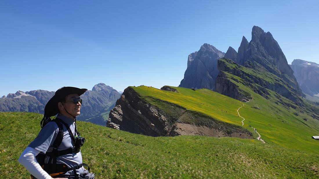 가끔 버스로 이태리 국경을 여행하며 산행하는 사람들을 보면서 언젠가는 직접 걸으며 신선한 자연을 느껴보고 싶던차에, 기대에 부풀어 알프스 트레킹을 신청하였습니다. 5월 말까지 눈이 와 쌓여 일부 구간이 통제되었다는 소식에, 오랫만에 시도하는 산행이라 좀 무리인가 싶었지만 공해없는 자연에 도취되어 일행들과 무사히 마칠 수 있었습니다. 베니스로 직행하여 작은 산악 마을인 오르티세이에 도착하자마자 오염없이 구름한점없는 맑은 날씨, 신선한 공기, 청아한 새소리, 흐르는 계곡물소리는 자연적으로 눈을 뜨게 하는 활력소였습니다. 세체다 봉우리, 오들러 산군등은 영원히 살고싶게 만드는 자연풍광 그대로였습니다. 알프스의 최대목초지 인 알페 디 시우시를 지나고, 다음날 마리아 산장까지의 눈쌓인 구간을 아이젠을 차고 통과하여, 전망대에서 돌로미테 최고봉인 마르몰라다 등 산군들을 감상할때만해도 맑았던 날씨가 급변하여 중간에 비가 뿌리는 바람에 비옷을 둘러쓰고 하산하던 기억도 생생합니다. 동계올림픽 개최지인 코르티나 담페초, 이탈리아와 오스트리아의 격전지로 알려진 라가주오이 산장까지의 천둥, 번개를 동반한 악천후 속에서 산행을 하며 험악한 산세와 전쟁의 흔적들을 관찰하는 것도 아주 뜻깊은 시간이었습니다. 다음날 트레치메를 돌아오는 마지막 트레킹 코스도 아주 인상깊은 풍광으로 오래도록 기억에 남아있고, 마지막날 일행들과 같이 베니스 산마르코 광장에서의 맥주파티로 아쉬운 여행의 마지막밤을 달랬습니다. 심대리의 친절한 가이드를 포함해 전체적인 트레킹 코스나, 숙소, 음식 등은 만족스러웠고, 다음의 행선지를 구상해 보면서 무사히 귀국길에 올랐습니다.