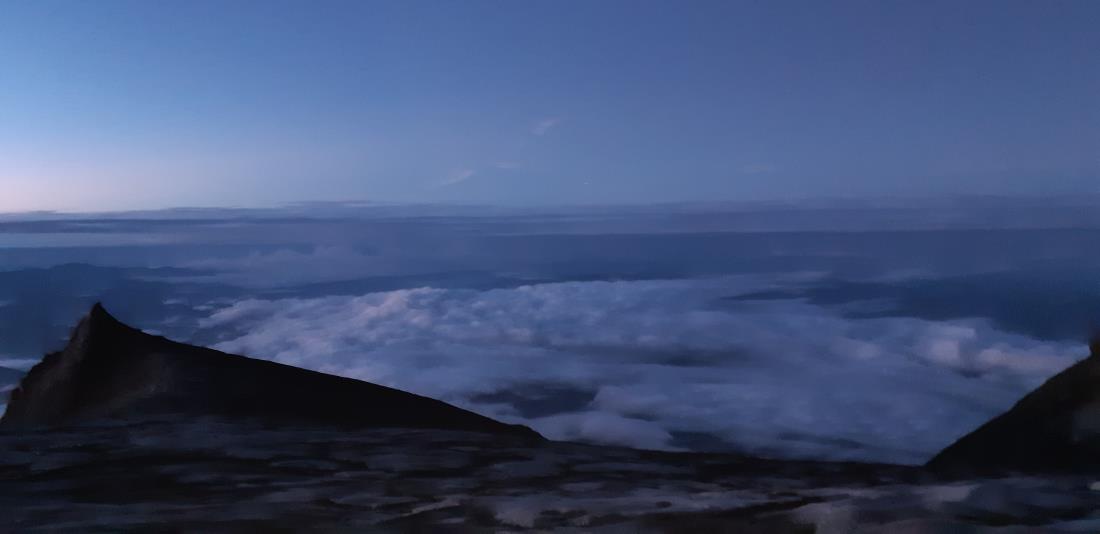 출발이 채 열흘도 남지않았는데도, 여행사는 나를 트래킹 대원으로 받아주었다. 이번에 함께 동행한 팀원 중에 착한 사람이 많았는가보다. 날씨가 너무나 쾌청하였다. 새벽에 산을 오르다가 뒤돌아보니, 저 아래로 코타키나발루의 야경이 꽃밭처럼 펼쳐졌고, 하늘에는 초롱초롱한 별과 은하수가 지상으로 쏟아지고 있었다. 그리고 반짝이는 대원들의 헤드랜턴 빛줄기는 캄캄한 어둠속에서 점점이 위로 위로 오르고 있었다. 다섯시가 좀 넘어서, 동쪽 하늘에 붉은 기운이 감돌기 시작한다. 동이 터오면서, 거무스런 코타키나발루 바위산은 모습을 드러내기 시작하였다. '죽은 자가 존경받는 곳' 이란 뜻이 담긴 산이름처럼, 산은 엄숙하고 신비스러웠다. 더 오를 곳이 없는 로스피크 정상에서 바라다 보는 저 이래 사우스피크, 고릴라를 닮은 세인트존스피크는 광활한 화강암 벌판에 우뚝 솟아 코타키나발루의 명작을 연출하고 있었다. 산을 내려오면서, 하얀 뭉개구름이 만든 광활한 운해와 구름 사이로 언듯언듯 보이는 녹색의 푸르른 정글은 신만이 빚을 수 있는 대자연의 파노라마였다. 단 한번 찾아온 내게 이렇게 멋진 최고의 트래킹을 경험하게한 신의 선물( 쾌청한 날씨)에 감사할 따름이다. 빈틈없는 추진과 세심한 배려로 우리들의 멋진 트래킹을 도운, 두분의 가이드에 대해서도 정말 수고하였다, 감사하였다는 말을 전하고 싶다. 혜초 코타키나발루 화이팅!