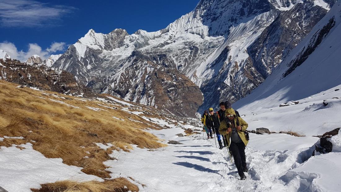 그러나 다음날 부터 푼힐전망대~츄일레~시누와~데우랄리~ABC까지 가는 동안 정말 날씨가 우리나라 가을하늘 같은 청명한 날씨가 계속되어 평소에 볼 수 없었던 히말라야의 고산준봉들을 눈에 담으며 트레킹하는 행복을 누릴 수 있었다. 더구나 우리를 안내한 현지가이드 수닐은 트레킹템포를 적절하게 조절하며 휴식과 사진촬영 등의 수고를 해주며 특히 우리의 안전에 각별히 신경을 써주어 안전한 산행이 되었다. 우리가 내려오고 난 후에 사고가 난 히말라야롯지와 데우랄리구간은 사고가 잦은 구간이라며 빨리빨리를 외치며 신속하게 통과하였는데 수닐의 경험과 현명한 판단이 옳았다는 것을 알 수 있었다. 또한 트레킹하면서 느낀점은 혜초의 주방팀 요리가 우리나라 주부들 보다도 더 한국적인 한식요리를 한다는 것이다. 트레킹 내내 동료들이 집밥 보다 훨씬 맛있다는 칭찬을 아끼지 않았던것 같았다. 7박동안의 힘든 트레킹을 안전하고 즐겁게 안내해 준 수닐에게 감사한다. |