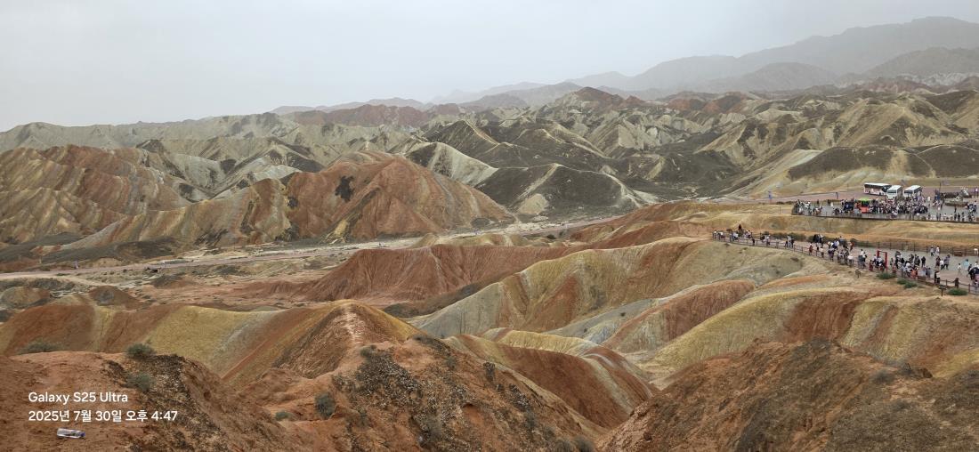 사막과 칠채산/빙구단하, 그리고 란주의 황하석림 을 돌아보는 일정이다.. 오지임에도 불구하고 고속열차와 고급 리무진의 훌륭한 교통 인프라로 일부 고령의 어르신도 계셨으나 모두 편안하게 잏정을 마무리 지었다. 바단지린 사막은 비단결 같은 부드러운 모래와 사구.그리고 곳곳의 호수로 아름다움을 더해 주었으며~~ 칠채산과 빙구단하는 자연의 웅장함과 더불어 독특하고 신비한 경관이 감탄을 자아내게 했다.. 란주의 황하석림은 황하를 따라 형성된 기괴한 석림과 공원내의 정상 전망대에 올라 바라보는 풍광이 자연의 신비함과 웅장함을 대변하는 절경이었다.. 다만 뜨거운 지열과 무더운 날씨로 인해 황하석림과 바단지린의 관광은 즐거움이 반감되었고~특히 바단지린은 뜨거운 날씨로 인해 충분한 사막의 시간을 갖지못한 점이 아쉬웠다. 방문지는 모두 아름답고 훌륭했으나 전체적인 일정(시간)이 상대적으로 긴 느낌으로 개선의 여지가 있을 듯.. 현지 정복길 가이드의 성실함과 인솔자 지가영 TC의 사명감이 어울린 멋진 협업으로 이번 여행의 품질을 한층 업그레이드해 주었다고 생각한다.. 현지 가이드와 인솔자는 역시 혜초 최고의 영업인력(활동)임을 실감한 여행이었다.