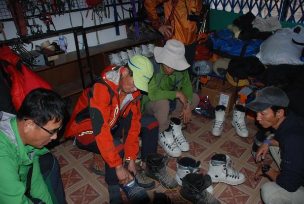 안녕하세요? 혜초여행사 김종호 사원입니다. 10/17일~11/3일까지 9분의 대원과 김근생 대장님, 그리고 저, 김종호 사원이 함께 임자체 등반을 다녀왔습니다. 혜초여행사는 23년간의 트레킹 노하우를 바탕으로 본격적으로 전문등반에 첫발을 내디디려고 하고 있습니다. 그 첫번째 행사가 바로 '혜초 히말라야 원정대 임자체 등반'입니다. 저희 혜초여행사는 다른 여행사와는 다르게 출발전부터 사전설명회를 비롯해 한국산악회 암장에서 사전교육을 실시해 산행장비에 대한 기초지식이 없으신 분들을 위해 철저히 교육을 실시하였습니다. 첫번째 이야기는 상행 카라반 카트만두에서부터 임자체베이스캠프 입성까지 해 드리도록 하겠습니다. 임자체 등반은 트레킹과 다르게 등반장비가 필요합니다. 설산을 오르기 위한 빙벽화와 크램폰, 설벽에 설치한 픽스로프를 잡고 올라가기 위한 안전벨트, 등강기, 하강기 등 안전을 위한 장비가 대부분 입니다. 계획상에 따르면 7일의 상행카라반을 계획하였으나 카트만두에서의 비행기 연착으로 하루를 루클라에서 보내게 되었습니다. 하루평균 8~9km의 트레킹을 합니다. 가기 전에 날씨가 좋지 않을 것으로 예보되어 있었는데요, 다행히 날씨가 좋아 파아란 하늘과 새하얀 설산을 보고 갈 수 있어서 트레킹은 힘이 들지 않았습니다. 가기 전에 사전 교육도 실시 했지만, 대원 평균 연령이 62세 정도로 걱정이 된 것은 사실입니다. 하지만, 나이는 숫자에 불과하다는 것을 대원들 모두 증명해 주셨습니다. 어느 젊은이 못지 않게 끝까지 잘 해 주셨습니다. 고소를 처음 경험하신 분들도 있어 저희는 항상 안전에 주의를 하였습니다. 매일아침 펄시옥시매타로 대원들의 산소포화도와 맥박수를 측정해 건강관리를 했습니다. 그리고 산소발생기, 가모우백, 산소통을 구비하여 만약을 위해 준비하였습니다. 저는 5년 전 에베레스트 등반 이후로 쿰부 히말라야 방문했는데, 히말라야의 산들은 변하지 않았더군요. 루클라와 남체 앞에 펼쳐진 콩데(6,168m), 트레킹 전반에 나타나 언제나 멋진 전경을 보여준 탐세르크(6,608m)와 캉테가(6,685m), 세계 3대 미봉으로 잘 알려진 아마다블람(6,856m), 어마어마한 높이의 에베레스트(8,848m), 로체(8,414m)... 그외 쿰부 히말라야의 산들이 지금도 눈에 생생합니다. '혜초 히말라야 원정대'는 일반 트레킹과는 다른 방향으로 나아갔으면 하는 바람입니다. 단순한 트레킹이 아니고 일반 원정대와 같은 방식으로 꾸려나아가려고 하고 있습니다. 아무래도 개인 각자각자 오시기 때문에 팀웍이 잘 안 맞을 수 있다는 생각을 하였습니다. 그래서 사전에 설명회도 갔고 교육도 가지면서 팀웍을 맞춰 나아갔습니다. 사전 교육을 했다하더라도 겨울 등반 장비에 대해 생소하신 분들이 많았습니다. 그래서 이런 장비들에 익숙하도록 추쿵에서 이중화를 신고 2시간 정도 걷게 했고, 베이스 캠프에서는 정상공격을 가정해 픽스로프를 깔고 실전처럼 훈련을 하였습니다. |