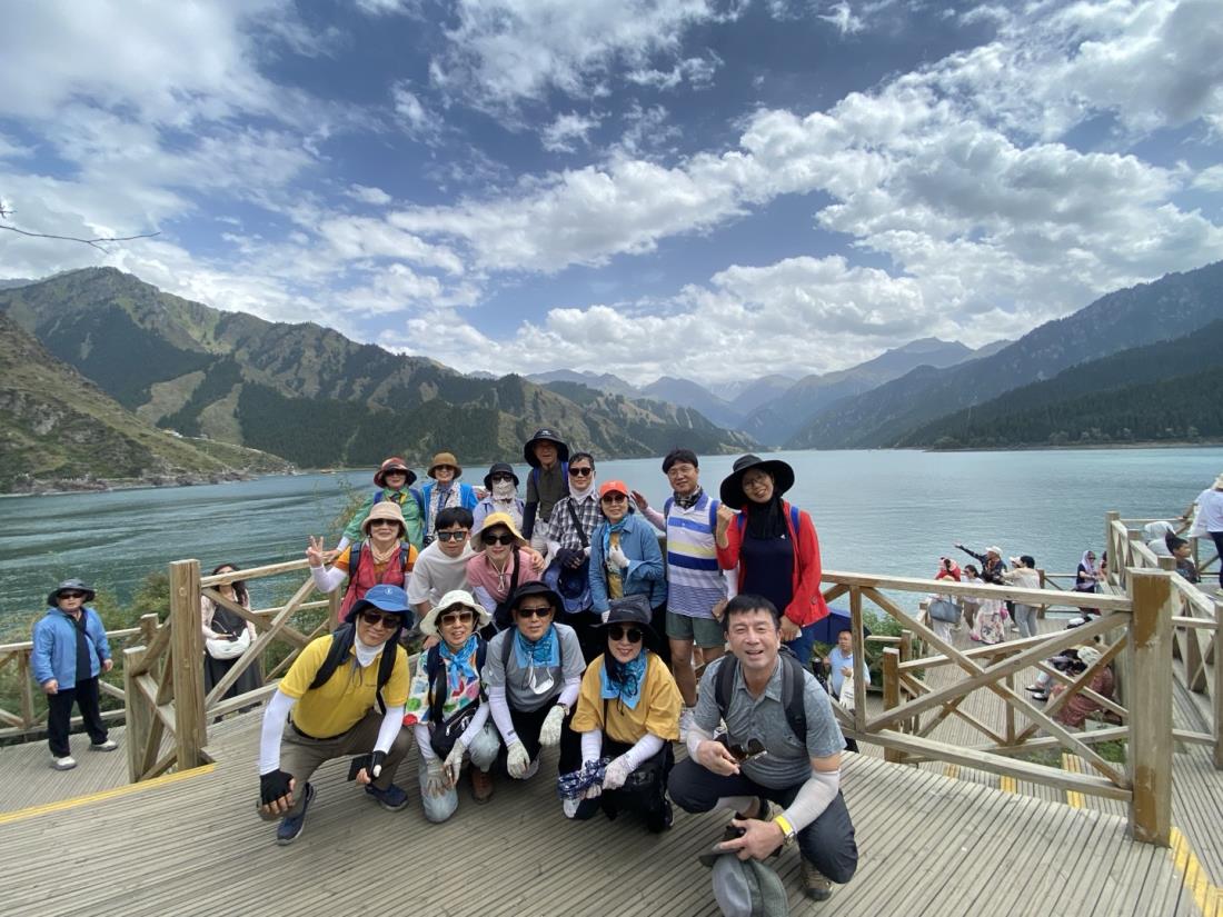 2천여미터높이에 있는 천산천지의 맑고깊은 물과 멀리 보이는 5천미터 만년설산의 모습은 자연의 신비로움과 경이로움을 느끼게했습니다