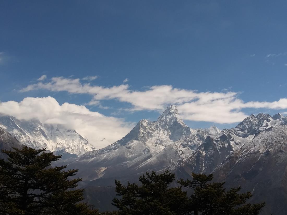 트레킹 내내 설산 봉우리들이 서로 자신을 먼저 사진 찍으라는 듯이 가파른 위용을 자랑하였다. 그 가운데에서도 아마다블람(6,856m)을 이정표 삼아 계속 바라보며 걸었고, 여러 봉우리들 중에서도 가장 아름다웠다. 계곡 밑으로 흐르는 맑은 물과 어울리는 침엽수들, 수없이 변하는 구름 속으로 고개를 내미는 설산 봉우리들의 장면 하나하나가 한 폭의 그림이다. 구름들이 산을 넘으며 어떤 그림을 그리느냐에 따라 파란 하늘과의 어울림이 달라진다. 아침, 저녁으로 빛나는 설산도 아름답다. 산을 온전히 내 안으로 옮기고 싶었다. 산은 설명이 필요 없다. 힘들게 걸어와서 바라보는 멋진 풍광 앞에서는 말이 필요 없어진다. ‘좋다!’라는 느낌만 있을 뿐. 그리고 높은 산 능선에서 바라본 독수리의 비행은 많은 것을 생각하게 하는 시간이 되었다. 커다란 양날개를 펼치며 유유히 활강하는 모습은 ‘자유!’라는 낱말을 곧바로 떠올리게 한다. 낮은 곳에서 무리지어 깍깍거리는 까마귀 떼와는 차원이 달랐다. 쳐다보는 내내 마냥 부럽다는 느낌이 몰려든다. Simon & Garfunkel의 El Condor Pasa를 흥얼거리게 된다. “난 차라리 멀리 날아가 버리고 싶어요. Yes I would ~ ♬♪" 나는 얼마나 높은 곳에서 자유롭게 살고 있는지?