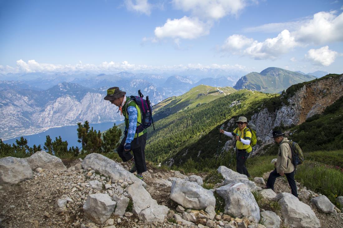 다섯번째 트래킹은 이탈리아 최대 호수 가르다 호수를 내려다 보며 돌로미테 산군을 조망하는 해발1700~2000미터 능선을 왕복종주하는 코스로 너덜지대가 많아 주의가 필요하고 체력에 부담되는 코스이나 일행 모두 안전한 산행을 하였습니다.