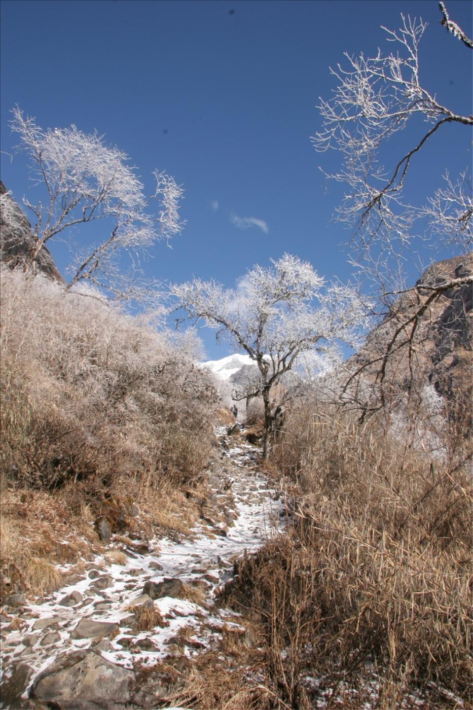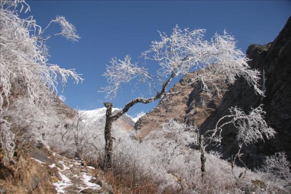 이런 눈꽃들이 내경험상 오래 피어 있지않다. 대부분 밤새내린 눈덕분에 얼어 붙었다가.. 햇살이 비취는 즉시 그때부터 녹기 시작해서.. 불과 눈꽃을 볼수 있는 시간은 한두시간 뿐인것으로 안다. 특히 네팔같이 고도가 높아서 따뜻한 곳에서는 더 그렇다. 해마다 한국에서..눈온 시기에 맞추어서 지리산을 찾기도 했는데. 활짝핀 눈꽃을 보기가 정말 어려웠는데 여기도 볼수가 있었다. |