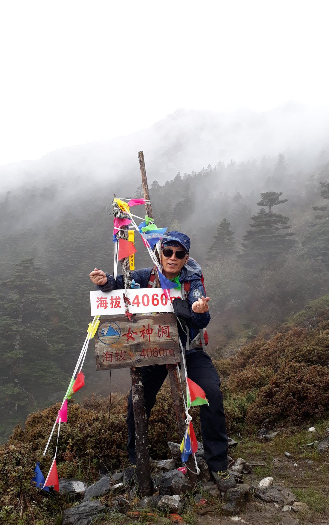 ‘여신동’ 표지판을 배경으로 인증 샷을 찍고 하산하기로 한다. 더 이상 가도시계가 나빠 소용없다는 결론이다. 해발 4,300미터 ‘설련대협곡’이 궁금하나 멈출 줄도 알아야 한다. 자연이 허락하는 만큼 즐기는 겸허함이다.