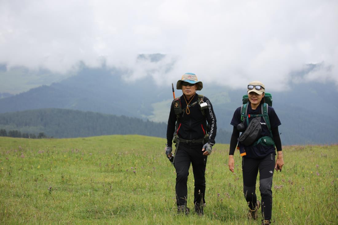 미끌미끌, 보들보들, 기분좋은 온천수로 피로를 씻어내고 누르빅(?) 현지 요리사의 김치찌개와 인솔자와 현지 사장님께서 공수해 준 우리 밑반찬으로 개운한 저녁 식사를 마친다. 부슬부슬 비가 내려 내일 일정이 걱정된다. 별을 찍어 보겠다던 계획은 수포로 돌아갔지만 산장을 울리는 빗소리는 새로운 경험이다. 아침엔 다시 맑음, 어제의 습기 탓에 운치있는 풍경을 연출한다. 고소 적응을 위해 3000m의 앙아르초 초원을 걷는다. 초원 위를 유유히 걸으며 평화롭게 풀을 뜯는 말 떼, 양 떼,,,그리고 순박한 현지 사람들,,또 야생화,,,저 멀리 설산에 걸린 구름과 가문비나무,,,그저 감탄과 행복함과 감사함밖에 나오지 않는다.
