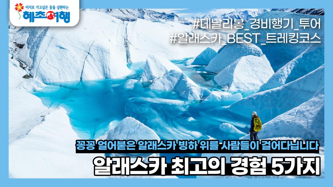 꽁꽁 얼어붙은 알래스카 빙하 위를 사람들이 걸어다닙니다.
