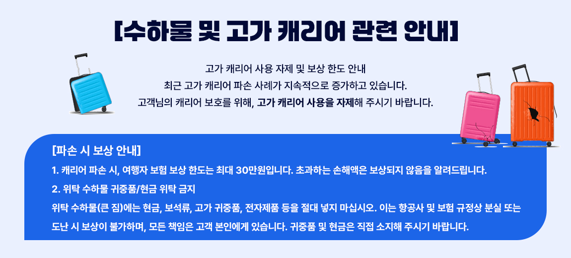 -여행자 개인의 부주의로 인한 여행 일정상 차질에 대해서는 본사 및 항공사에서 책임을 지지 않습니다.