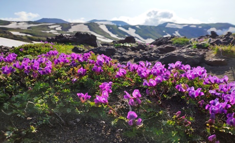 ▲ 바츠카제츠 화산의 눈은 6월 말부터 녹습니다. 7-8월 피어나는 싱그러운 자연을 그대로 마주하실 수 있습니다.
