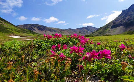 ▲ 바츠카제츠 화산은 극동의 알프스란 별칭을 가지고 있습니다. 이름처럼 많은 야생화와 녹색 절경을 자랑합니다.