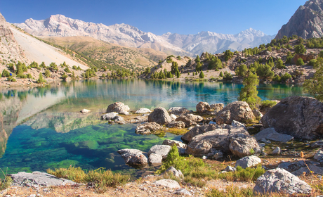 타지키스탄 북서부에 위치한 Fann Mountains는 페르시아어로 ‘높은 곳’을 뜻하는 ‘Fann’에서 이름이 유래한 장엄한 산맥입니다. 5,000m 이상의 봉우리가 우뚝 솟아 있으며, 100여 개의 산중 호수가 펼쳐져 있습니다. 본 트레킹 일정은 그중 주요 세 곳인 쿨리칼론 호수(Kulikalon), 알라우딘 호수(Alauddin), 이스칸데르쿨호수(Iskanderkul )를 방문합니다. 사마르칸트에서 국경을 넘어 약 2시간이면 트레킹의 시작점인 아르투치 마을에 도착합니다. 사마르칸트에서 출발해 접근이 용이하며, Chimtarga Peak(5,489m)과 같은 거대한 봉우리 산맥에 둘러싸인 이곳은 유럽과 러시아 트레커들에게 잘 알려진 트레킹 코스입니다.