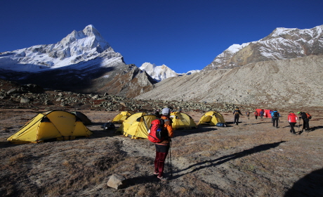 ▲ 바기라티 피크(6,856m)앞의 보즈바사 캠프에서 하룻밤을 보냅니다.