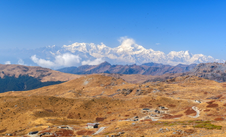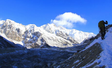 세계 제3의 고봉을 이루는 칸첸중가(8,586m)를 비롯하여 7천미터 이상의 고봉들이 줄지어 솟아 있어