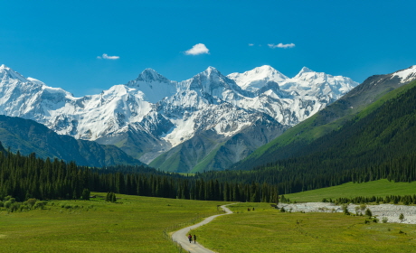 중국 서부 신강 위그루 자치구와 카자흐스탄, 키르기즈스탄, 우즈베키스탄 등의 나라에 걸쳐있는 산맥입니다. 빼어난 자연환경과 지질학적 가치로 인해 유네스코 세계자연유산에도 등재되어 있습니다. 장대한 빙하, 산을 뒤덮은 만년설, 산 어귀에 자리잡은 초원은 유럽의 알프스산맥의 모습과 닮아 있다고 해서 동양의 알프스 또는 중앙아시아의 알프스라는 별칭이 붙은 곳입니다.