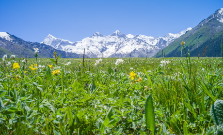 ▲ 봄/여름시즌에는 야생화가 만발합니다. 천산산맥의 만년설과 초원위의 야생화를 따라 힐링 트레킹을 진행합니다.