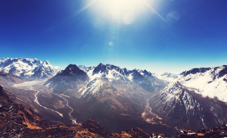 ▲ 깊은 계곡을 따라 가다보면 아름다운 칸첸중가 산군이 눈에 들어옵니다. 5~6천대의 고산들은 거의 이름없는 봉우리들입니다.