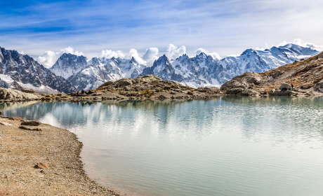 ▶ 플랑데레귀에서 샤모니와 브레방, 락블랑 등을 감상하며 걷고 몽땅베르에서 메르데글라스 빙하와 날카로운 드류 연봉, 알프스 3대 북벽 중 하나인 그랑드조라스 북벽의 위용을 감상한 후 산악열차로 샤모니까지 내려옵니다.