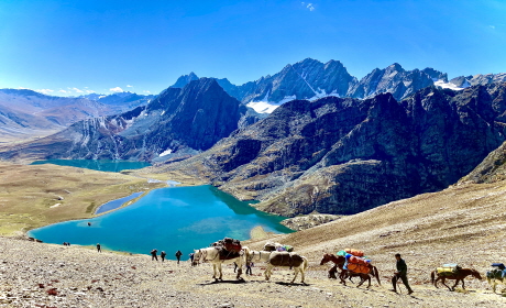 인도 카슈미르 지역에 있는 그레이트레이크 트레킹은 설산과 호수가 어울리는 5박 6일간의 트레킹 코스입니다. 4천미터의 3개 패스를 넘어 가면서 보는 에머랄드 호수가 아름다운곳입니다